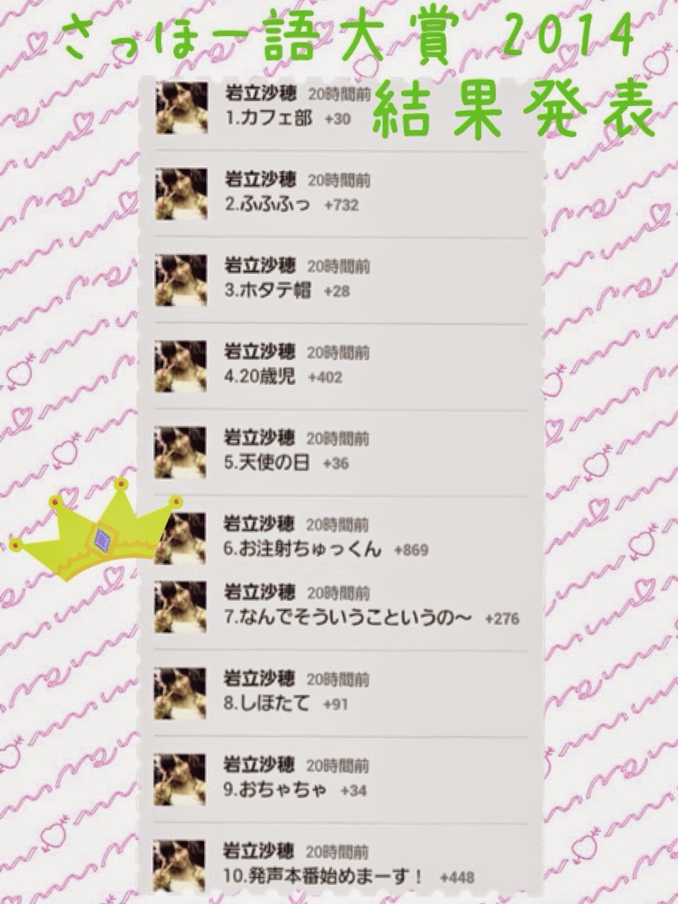 さっほー語大賞 2014 結果発表のお時間がやってきましたo(♡´▽`♡)o