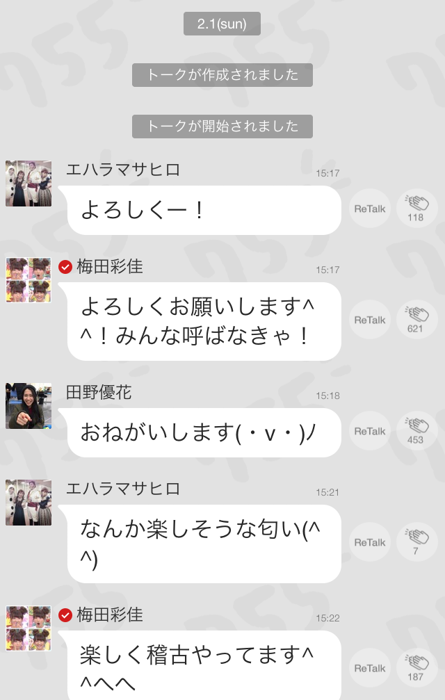そういえば昨日12期LINEがなってみてみたら梨奈が12期で755やらない?っていってたんだけど自分含め、返信が『やらない』『え?』それにくわえて既読無視数名で笑った。😂