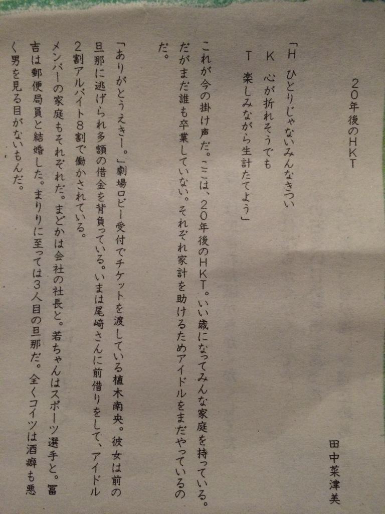 なつみかんが書いた「20年後のHKT」が面白かったので抜粋 pic.twitter.com/WnFa8weNTe