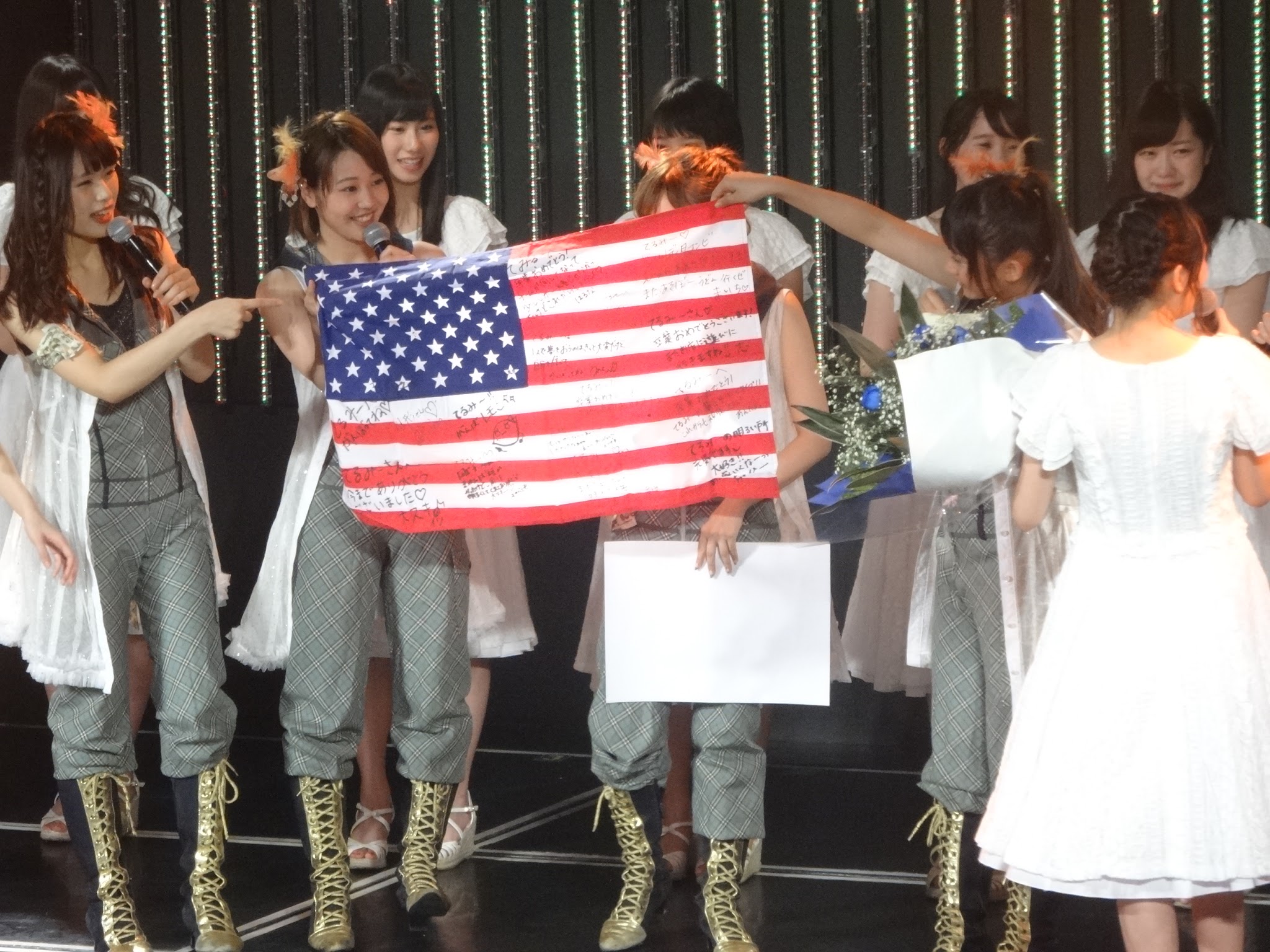 チームBⅡより、寄せ書きとアメリカの国旗(メッセージ入り)をプレゼント。(カリフォルニア出身?!)