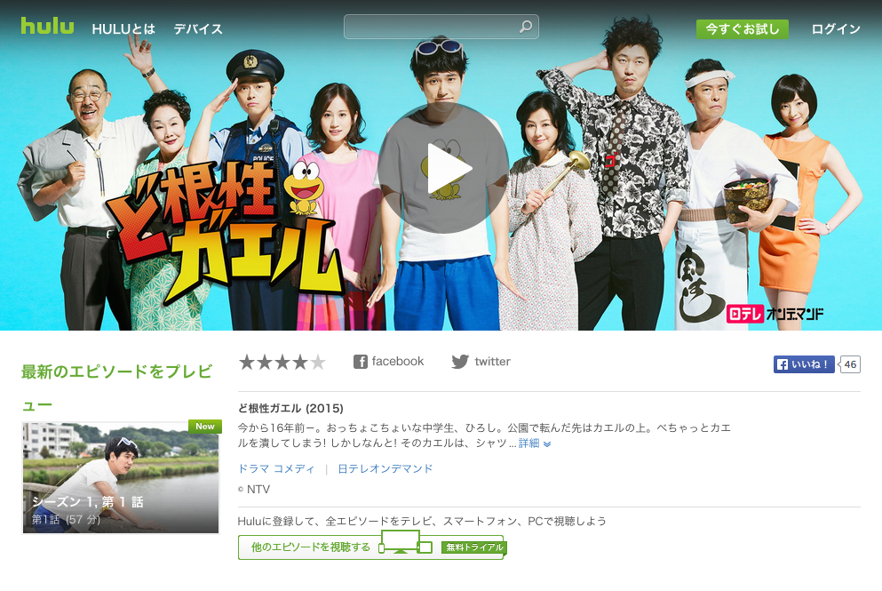 評判も悪くなさそうな感じ。huluでも配信されてます