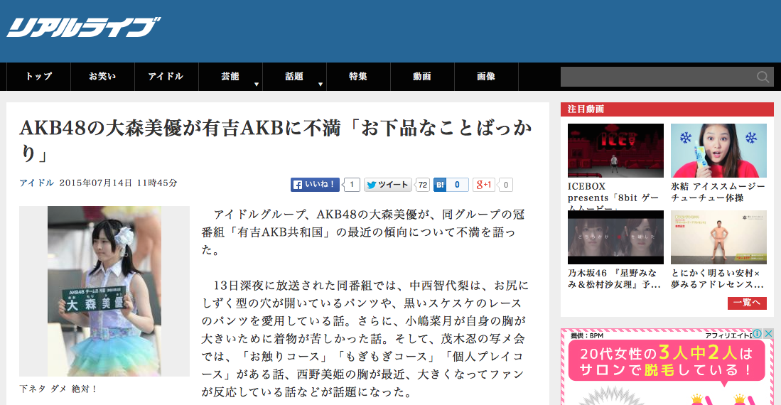 AKB48の大森美優が有吉AKBに不満「お下品なことばっかり」