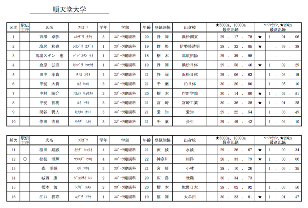 29日に区間エントリーがあって、あとは2日と3日の当日変更です。