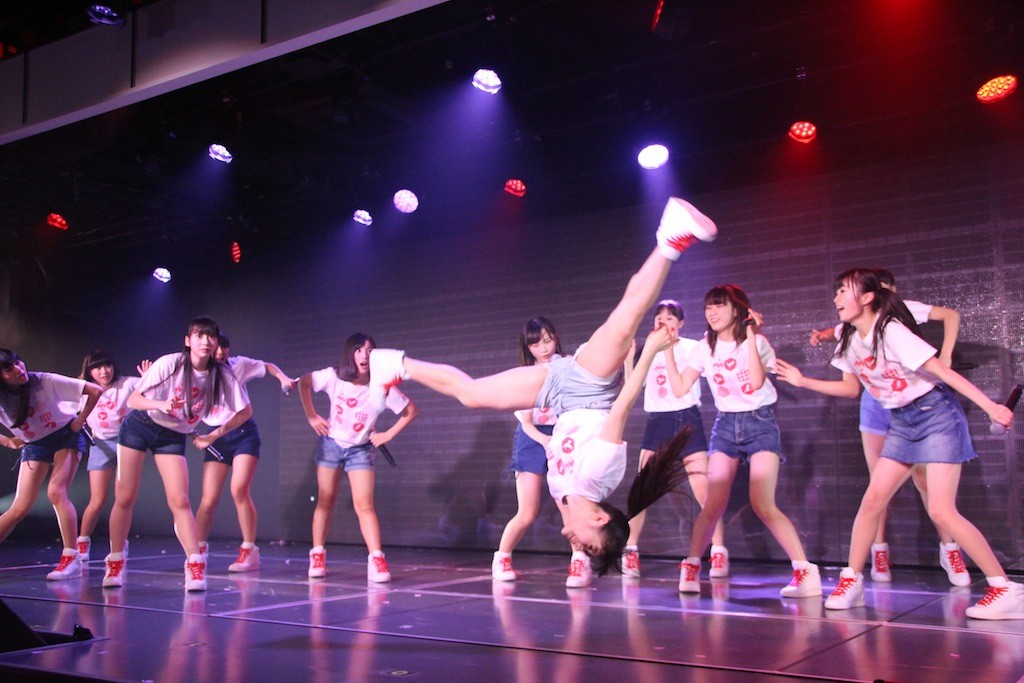 アンコールでは続いて「君のことが好きだから」「唇にBe My Baby」を16人で披露。「唇にBe My Baby」の曲中にはアクロバットが特技の加藤が側宙を決めてみせた。劇場限定とのことで新たな名物になりそうだ。