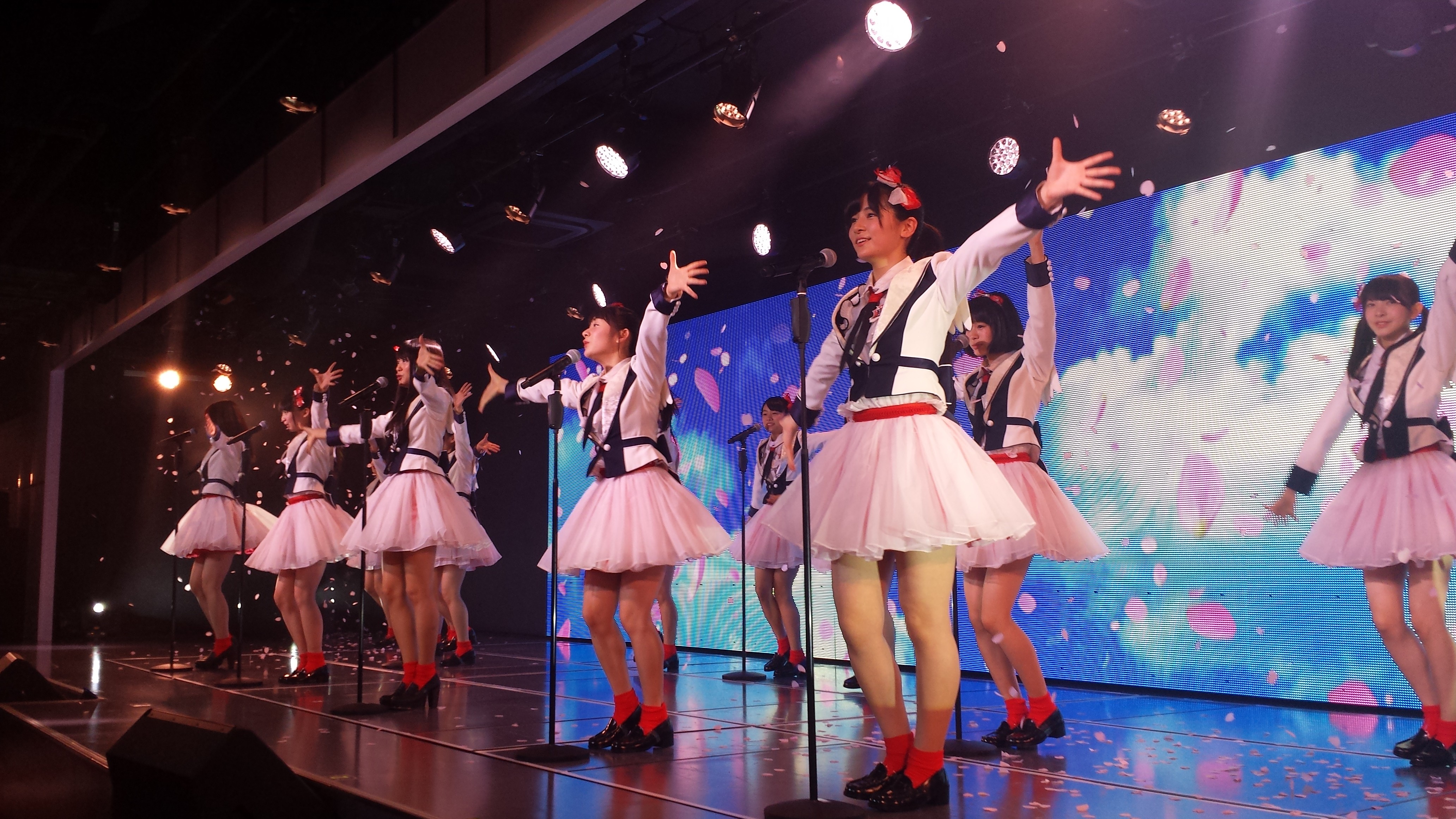 その後の全体曲。赤と白のNGT48衣装、
